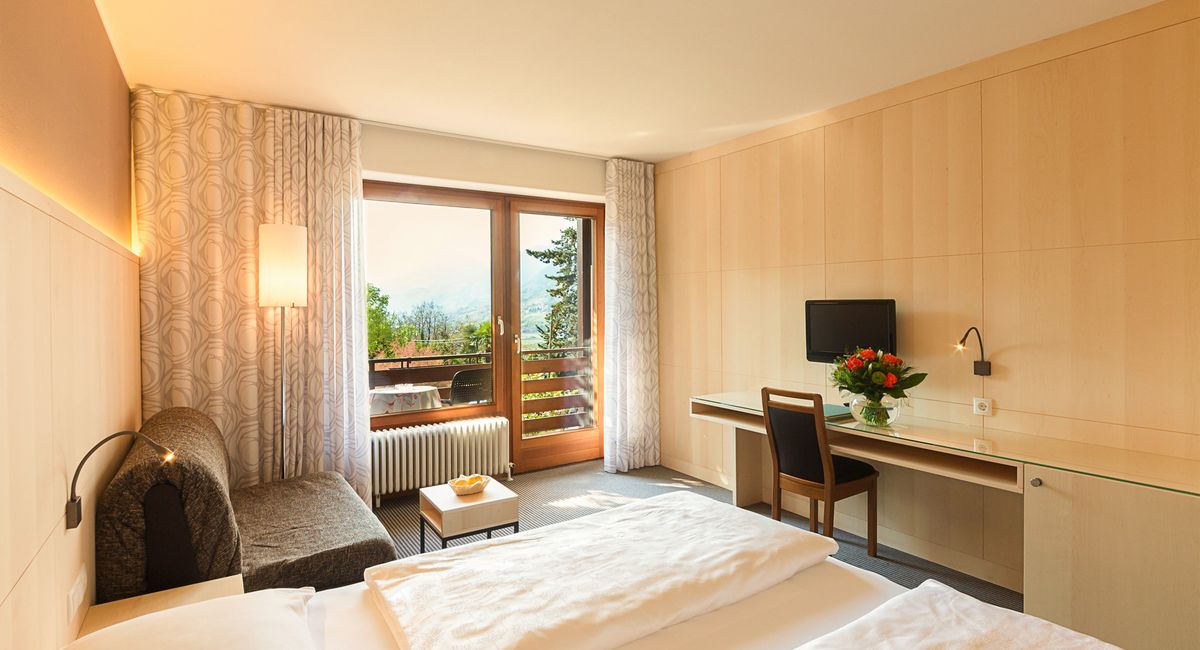 Alle unsere Wohlfühlzimmer verfügen über einen Balkon mit einem grandiosen Ausblick auf das Meraner Land und die umliegende Bergkulisse. Machen Sie es sich bequem und lassen Sie Ihren Blick über eine grüne Landschaft in die Ferne schweifen. Genießen Sie dieses Panorama und lassen Sie hier den Tag entspannt Revue passieren. Die angenehme Ruhe in unserem Hotel in Dorf Tirol garantiert Ihnen einen erholsamen Schlaf. Die ruhige und erholsame Urlaubsstimmung schenkt Ihnen Geborgenheit und Wohlbefinden!